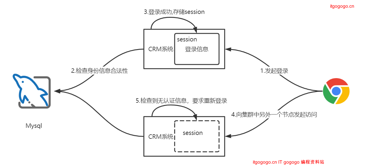对于登录而言,通常情况下我们喜欢把登录信息存储到服务器的Session中,这种存储方式在单体应用中没有问题,但是在分布式/集群环境中会存在Session丢失问题,如下图: