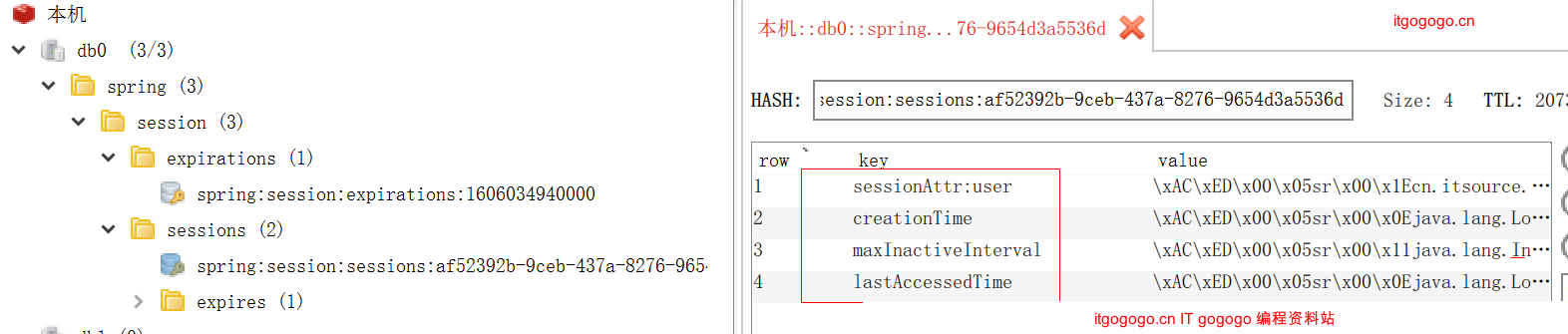 上面的代码很简单,使用session存储一个user , 启动好Redis服务器,使用Postmain访问 /login ,观察Redis中的数据