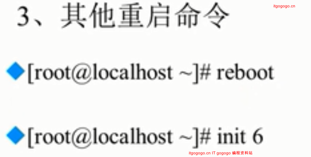 init 0代表关机命令,但是它不会保存正在运行的服务,并不安全。init 6代表重启。